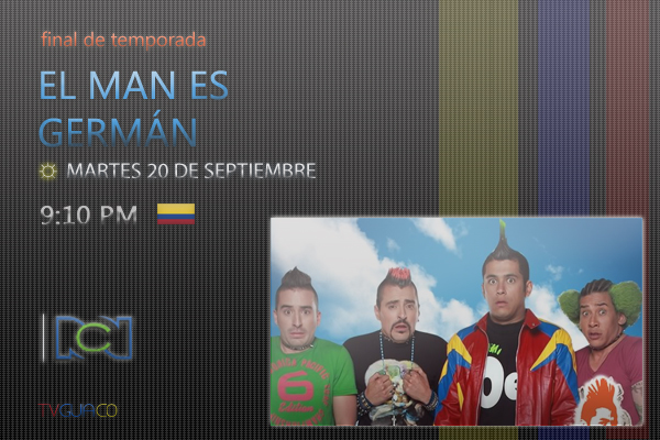 Aunque ella se niega a corresponderle, las cosas podrían cambiar, cuando la ‘chiquita brava’ descubra en la camisa de Bola 8, su esposo, una mancha de labial. Y aunque el Macho Alfa cree que esta es su oportunidad de volver con la madre de su hijo, un suceso inesperado hará que la vida de este hombre y de sus amigos, esté en peligro. ¿Qué pasará con estos singulares personajes? ¿Será este el fin del matrimonio de Bola 8? Resuelva estos y otros interrogantes, en el episodio final de la segunda temporada de El Man es Germán, en RCN Televisión.