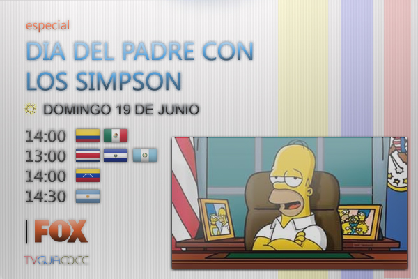 Hoy 19 de junio de 2.00 PM a 8.30 PM, Fox emite una tarde completamente amarilla y llena de humor especialmente dedicada a los padres en su día que incluye los mejores episodios temáticos de Los Simpson con Homero como protagonista para disfrutar en familia.
