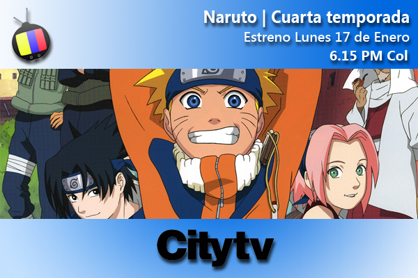 Este Lunes, City tv trae a Colombia los episodios de la última temporada de Naruto. Esta serie que ha sido emitida desde el principio ene ste canal sin nigún tipo de corte o censura como suele pasar en otros canales como Cartoon Network.